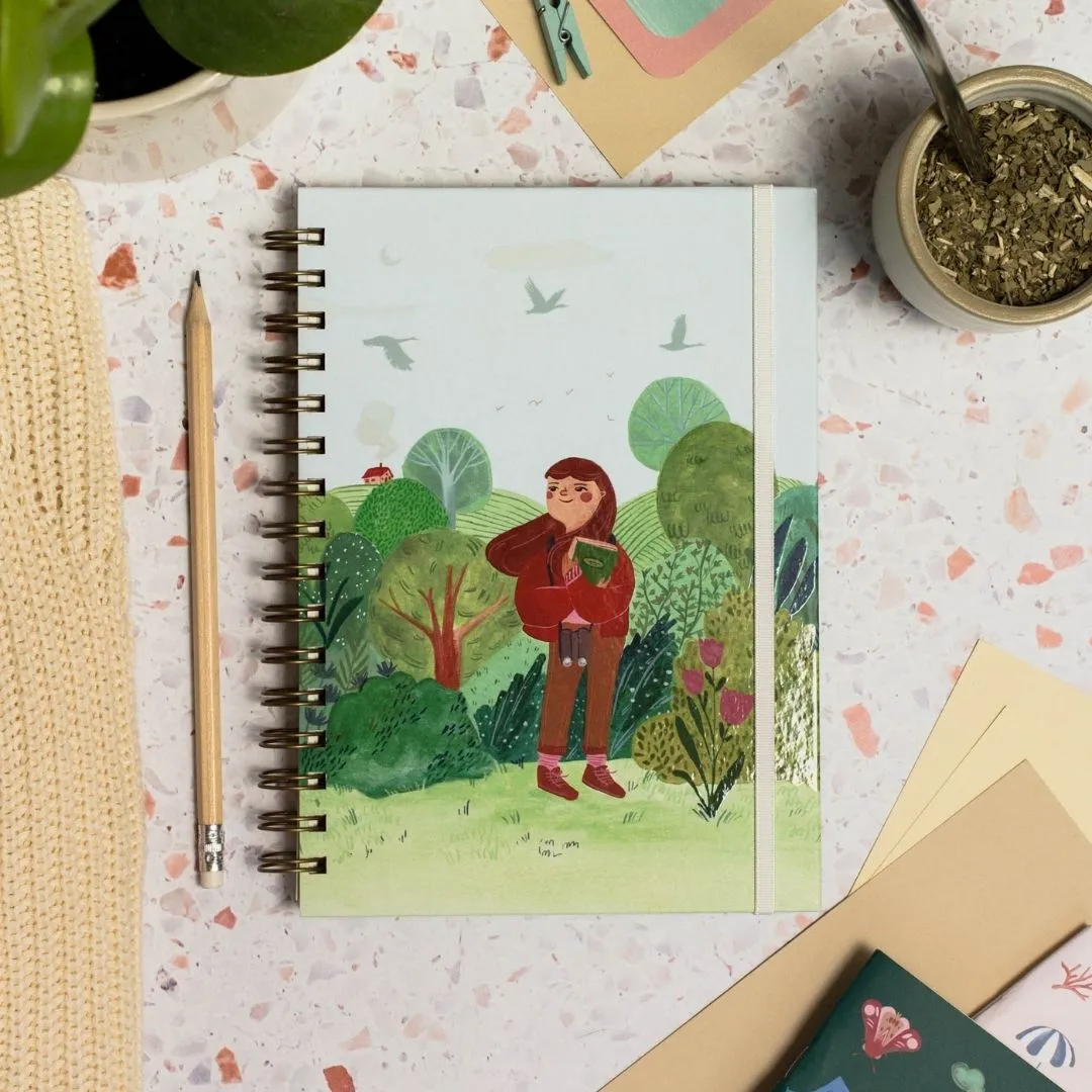Construida para resistir los rigores del camino, la bitácora CHIMI presenta una tapa dura y laminada que la protege de los elementos y el desgaste. Su encuadernación anillada permite una apertura completa y cómoda para escribir, mientras que el cierre elástico asegura que tus notas y recuerdos permanezcan seguros en todo momento.